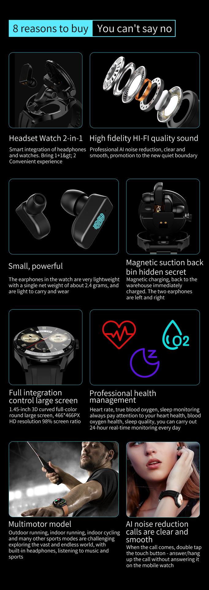 2in1 Smart Watch TWS Earbuds BT Call HR