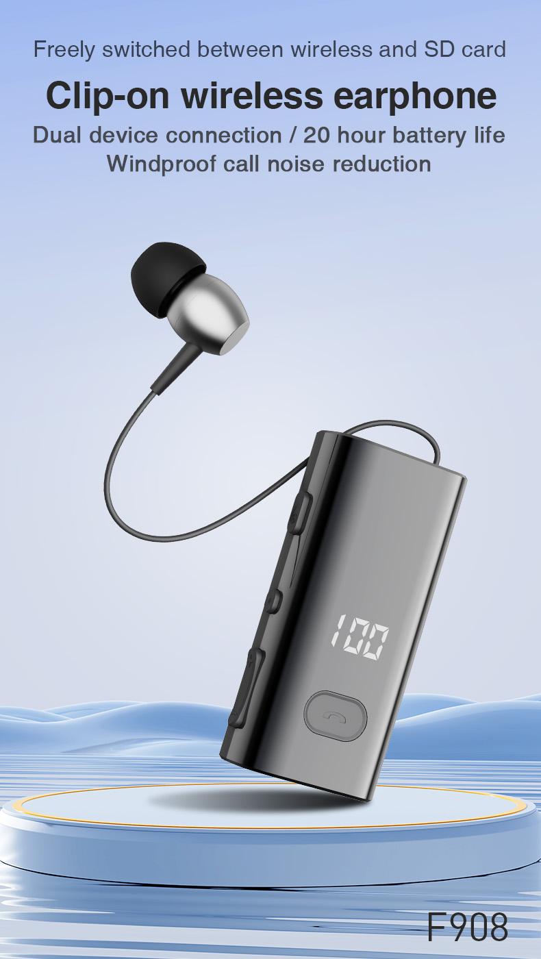F908 V5.4 Bluetooth Clip Headset TF Card
