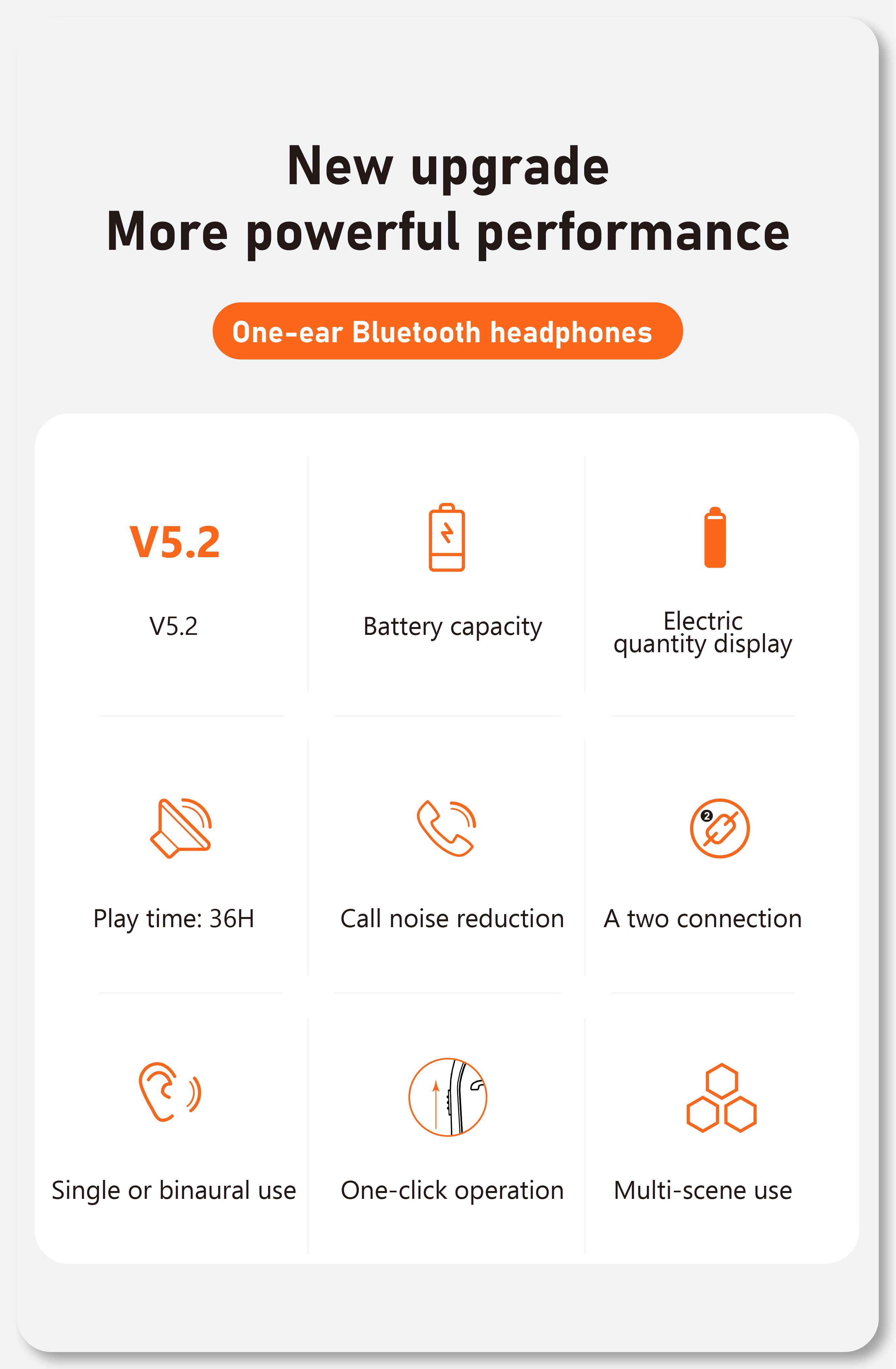 Single earbud design offers comfort. Lightweight fit for all-day wear without fatigue.