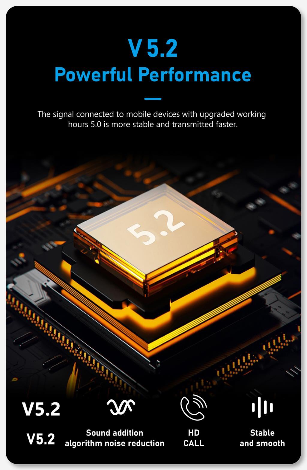 Experience clear calls with Bluetooth 5.2 technology. Stable connection ensures smooth audio.