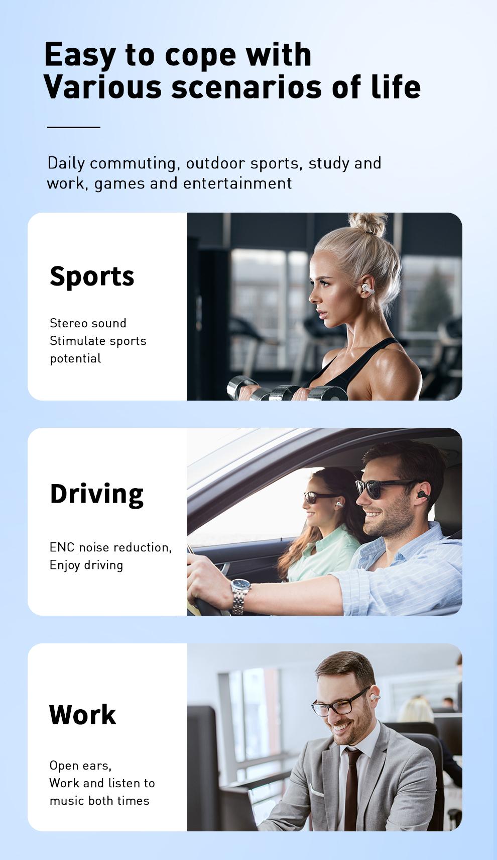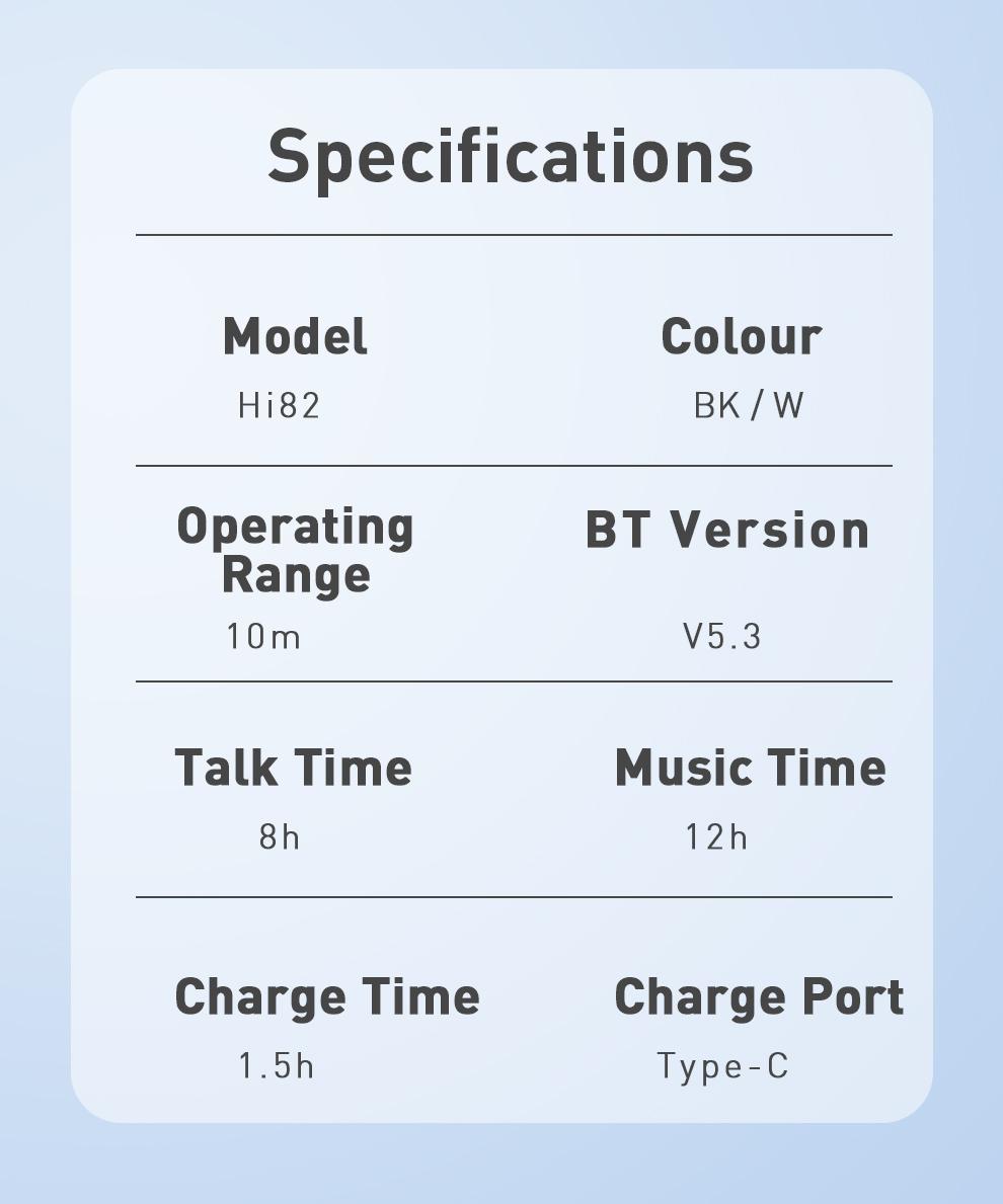 Super long standby up to 100 hours with charging case. Bluetooth 5.3 ensures speed connection.
