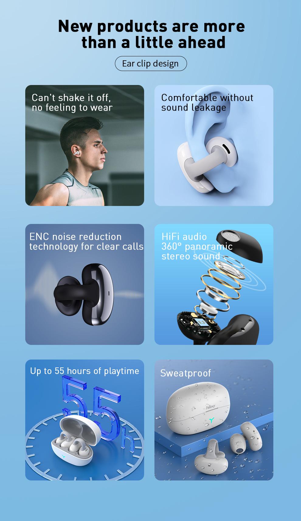 Hi82 Bluetooth 5.3 Clip Earbuds Wireless