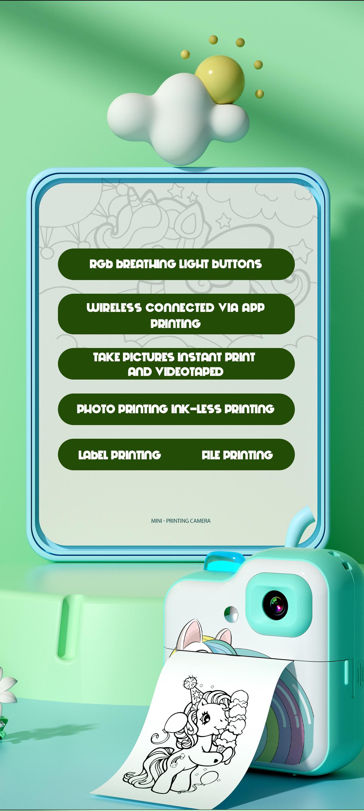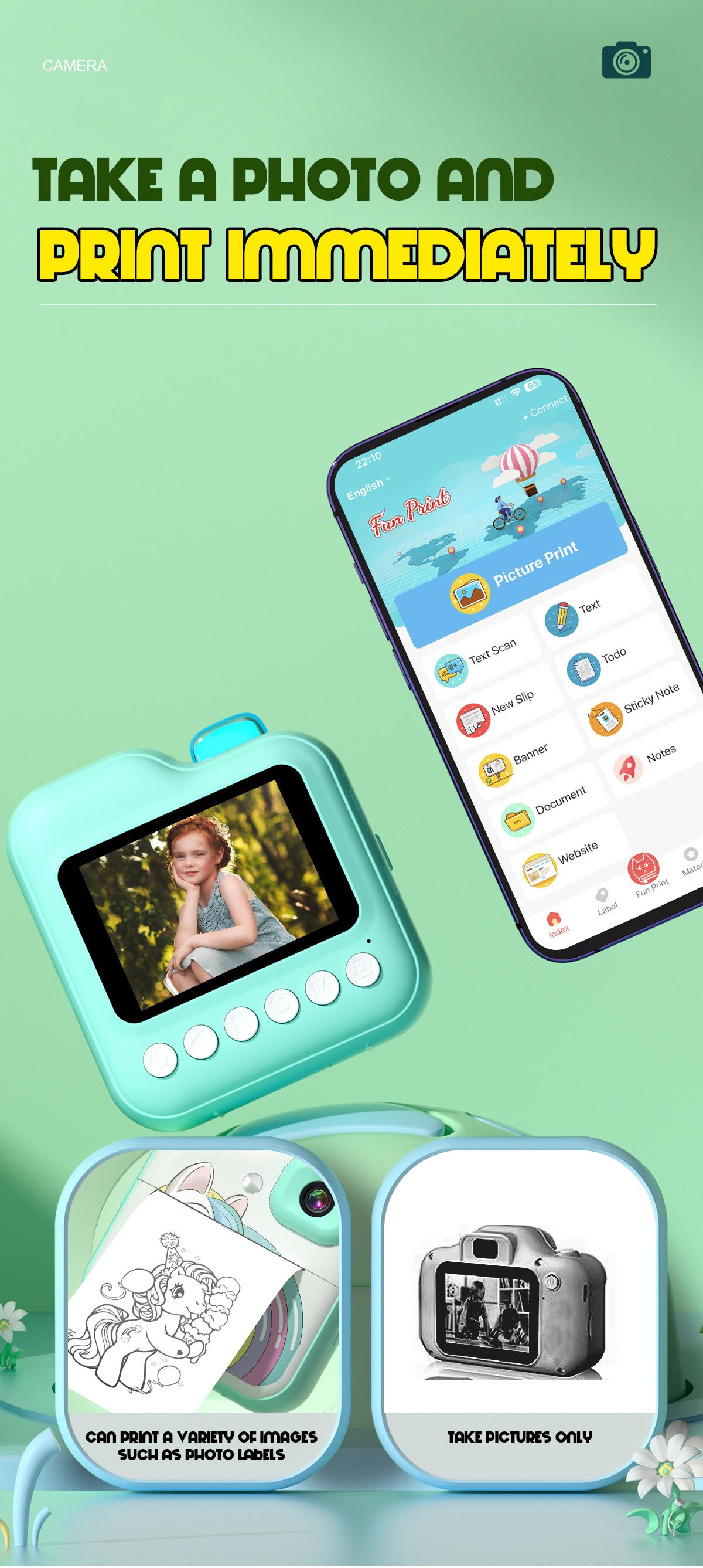 Instant fun for kids. Thermal printing needs no ink. Safe and easy to use anytime.