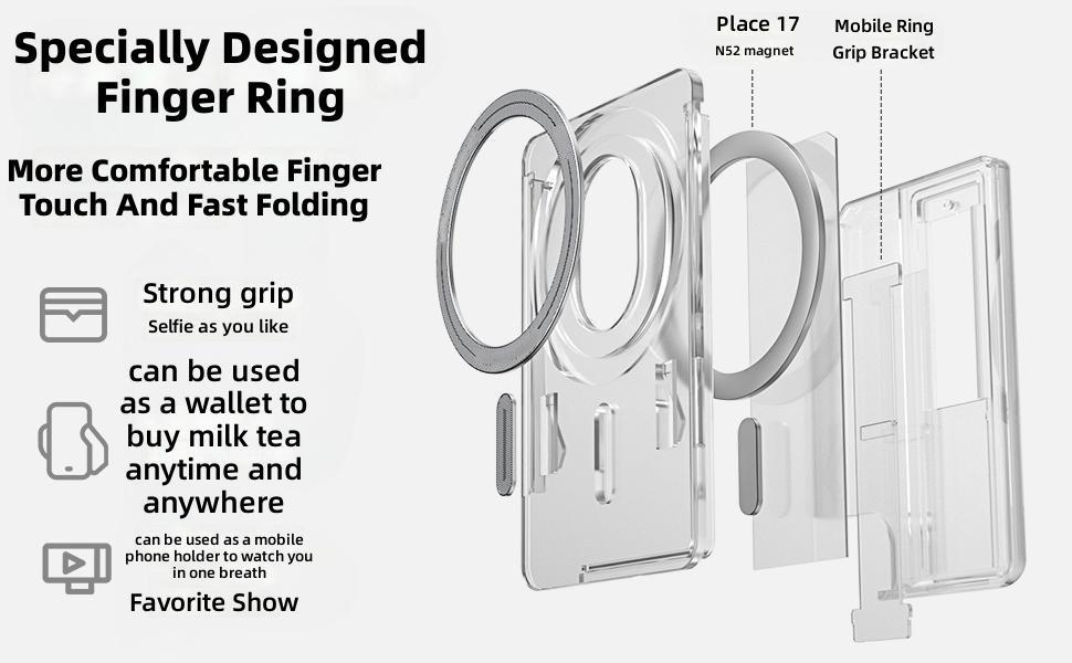 Built-in finger hook provides a secure grip. Prevents drops and ensures comfortable one-handed use.